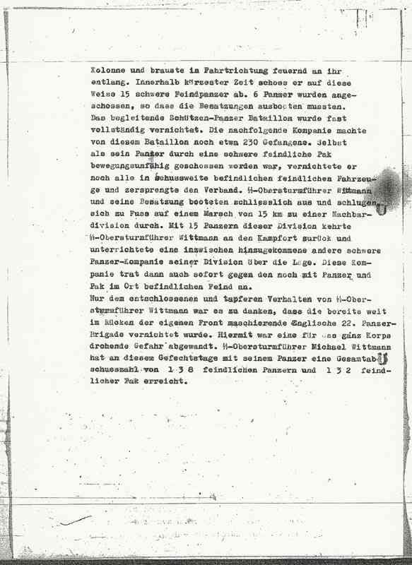 | Gefreiter Регистрация: 24.01.2010 Адрес: Донецк Сообщений: 81 | Тут вскользь упоминали о наводчике Витмана Бальтазаре Воле и надо сказать, что он также внес большой вклад в известность Витмана так как к концу войны считался одним из лучших наводчиков панцерваффе. Вот немного о нем: Родился 1 марта 1922 года в Вемметсвайлере (Wemmetsweiler) в Саарской области. После получения профессии электрика Воль 15 августа 1941 года записался добровольцем в Войска СС. Воевал в демянском котле, будучи пулеметчиком 3-й роты 1-го пехотного полка СС "Мертвая голова". В тяжелых боях на Восточном фронте получил ранение и был отправлен в Германию на лечение. В июле 1942 года он награждается Железным крестом 2-го класса и черным Знаком за ранение. В конце 1942 года Воль попадает в 13-ю (тяжелую) роту 1-го танкового полка СС дивизии "Лейбштандарт СС Адольф Гитлер", в экипаж Михаеля Виттмана. После боев на Курской дуге Воль в сентябре 1943 года награждается Железным крестом 1-го класса, а в январе 1944 года - Рыцарским крестом Железного креста. 2 августа 1944 года Бальтазар Воль отправился на лечение от полученных ранений, что возможно спасло ему жизнь. Спустя всего несколько дней после этого, 8 августа, Виттман погиб в танковом бою во Франции. Волю же суждено было выжить. 26 августа он вернулся на фронт, где стал командиром танка и дослужился до звания СС-обершарфюрер (SS-Oberscharführer). Бальтазар Воль выжил в войне и умер только в 1996 году. __________________ новобранец из Донбасса |